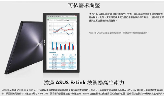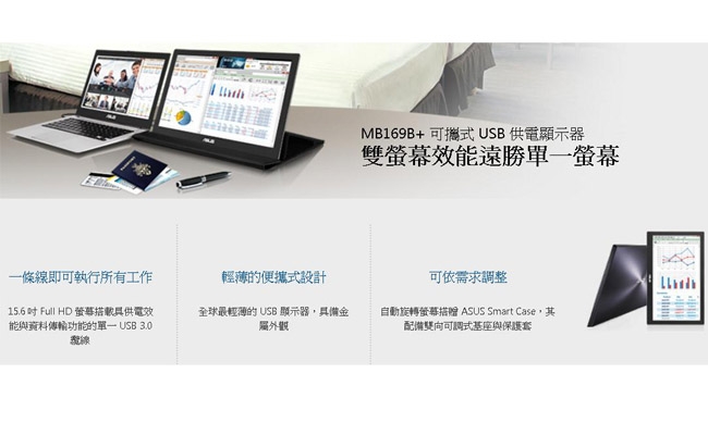 ASUS 華碩 MB169B+ 16型 IPS USB外接式電腦螢幕