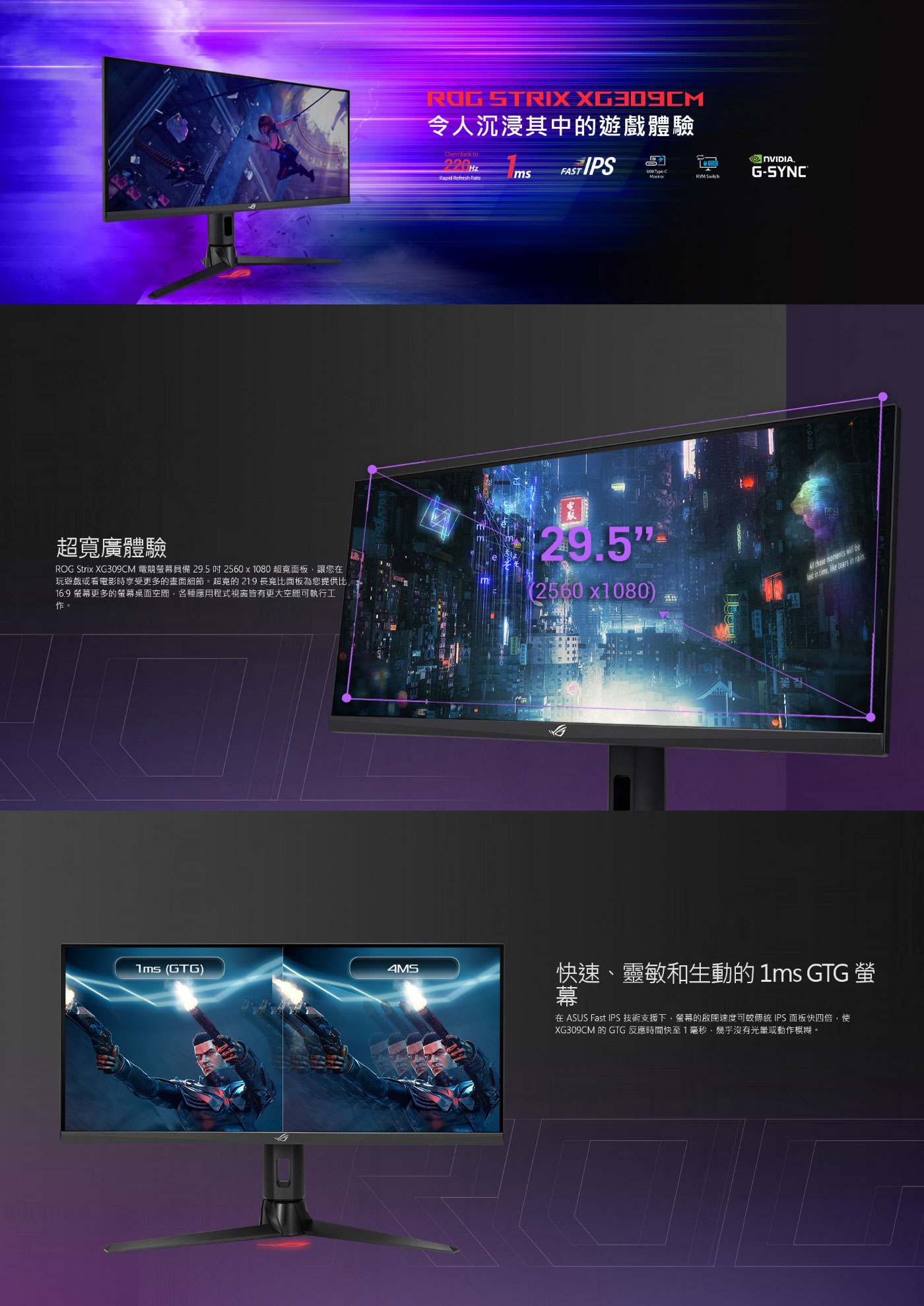 ASUS ROG Strix XG309CM 30型IPS電競螢幕(30型/2560*1080/21:9/220Hz/1ms/IPS/HDMI/DP)